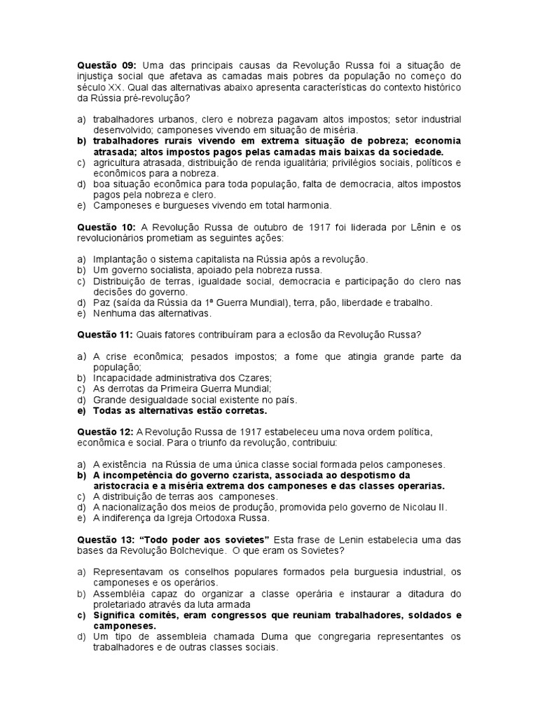 HISTÓRIA E GEOGRAFIA... TÔ POR DENTRO: Avaliação sobre Revoluçao Russa