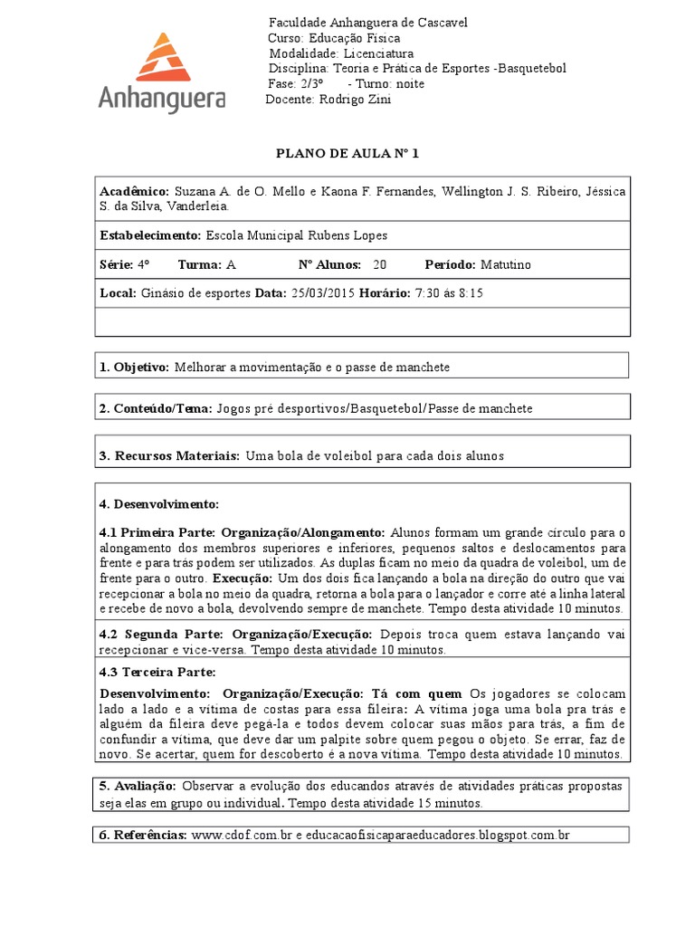 Plano De Aula De Basquete Ensino Fundamental 1 - Ensino Relacionado