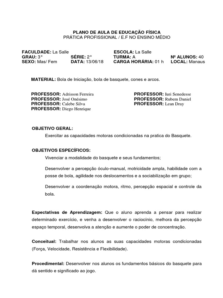 Plano De Aula De Basquete Ensino Fundamental - Ensino Relacionado