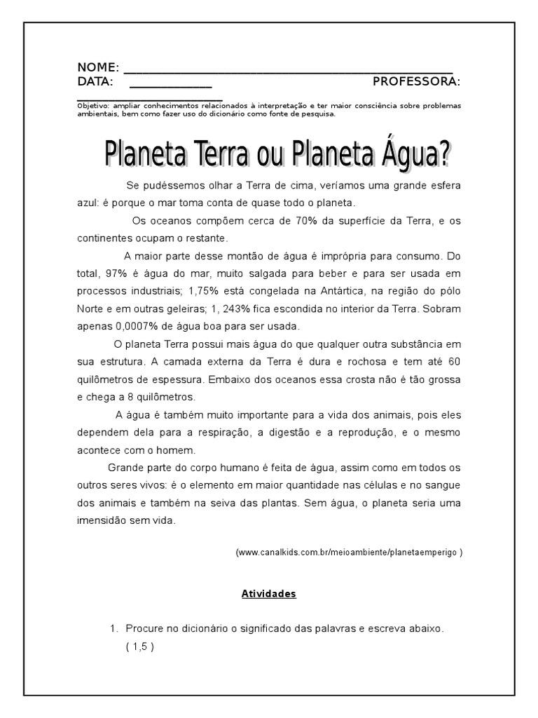 Texto e Interpretação Planeta TERRA Ou Planeta ÀGUA
